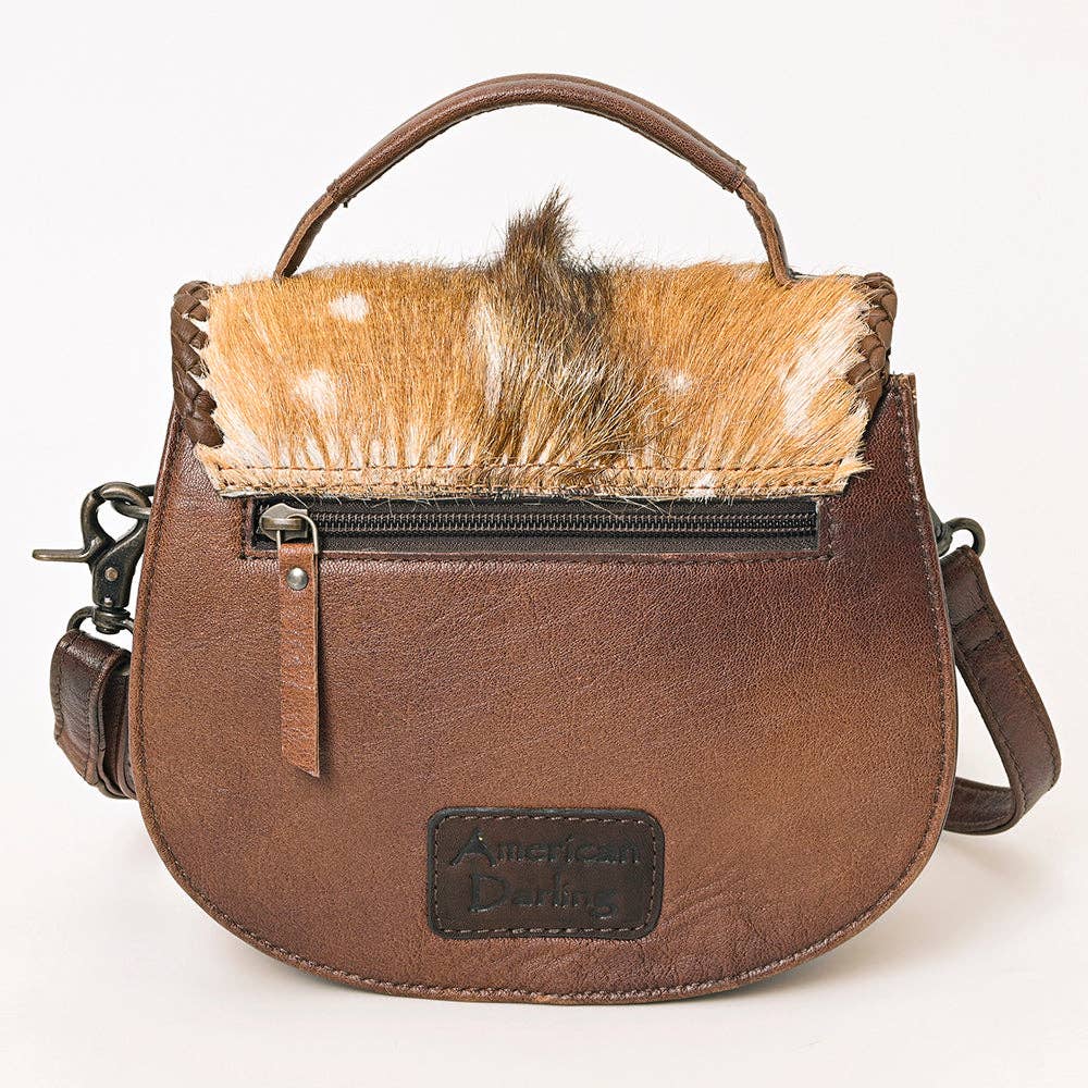 The artisan-selected cowhide front is framed with hand-stitched leather edging, giving the piece a refined, rugged character unique to American Darling’s Texas-born craftsmanship. A secure turn-lock closure keeps essentials protected, while the adjustable leather strap allows you to customize your fit for true hands-free convenience.