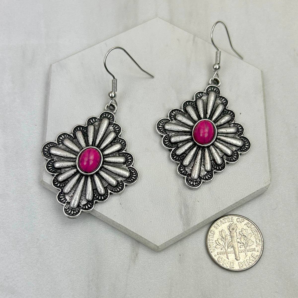 Explore the beauty of Western Elite Jewelry's Silver Metal with Blue Turquoise Stone Earrings. These Dangle Earrings are a stunning representation of our dedication to high-quality craftsmanship and style. The silver metal elegantly complements the blue turquoise stone, adding a pop of color that is sure to turn heads. Whether you're dressing up for a special occasion or adding a touch of elegance, these earrings are a fashionable choice.