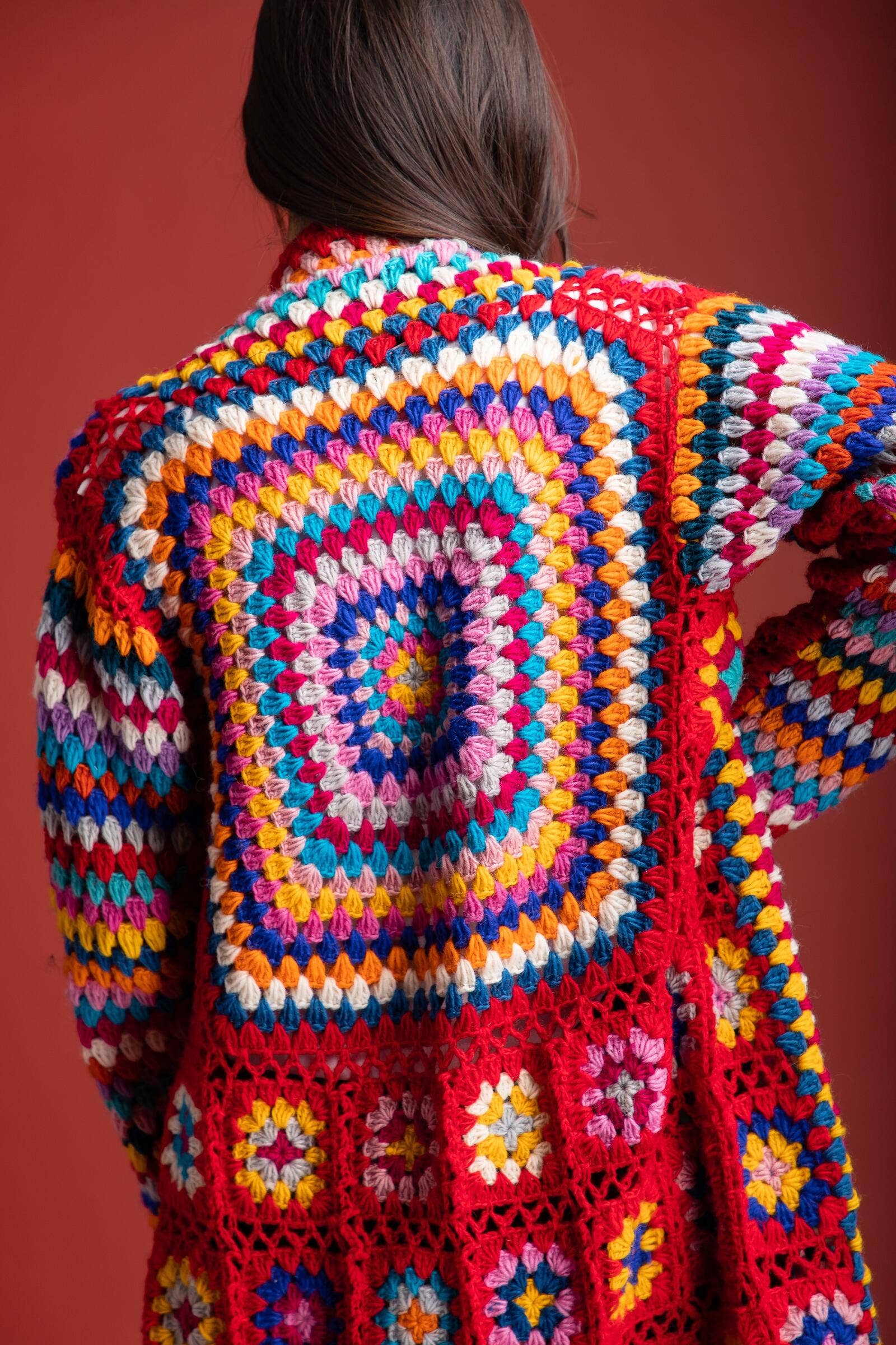 Our handmade Granny Square Crochet Kimono is a super stylish and sought-garment design for a modern woman. With an elegant look and unique design, this long kimono features crocheted multi-floral motif squares in a patchwork style with an open-front pattern.