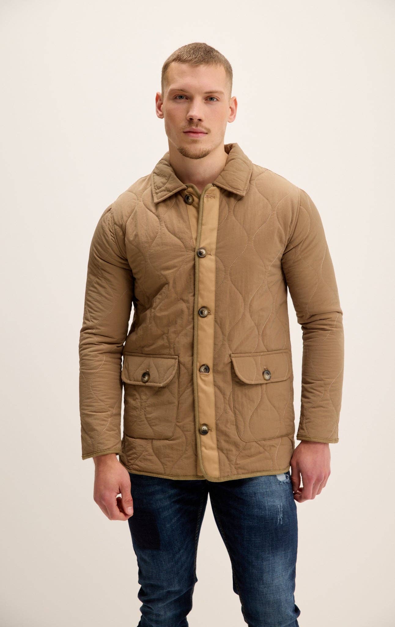 The snap button front keeps things simple and functional, while the lightly insulated, quilted construction adds warmth without bulk. It layers comfortably over sweaters, flannels, or lightweight knits, making it ideal for fall days that start crisp and end mild. Two front flap pockets offer utility without disrupting the streamlined look, and the structured collar adds just enough refinement to dress it up or down.